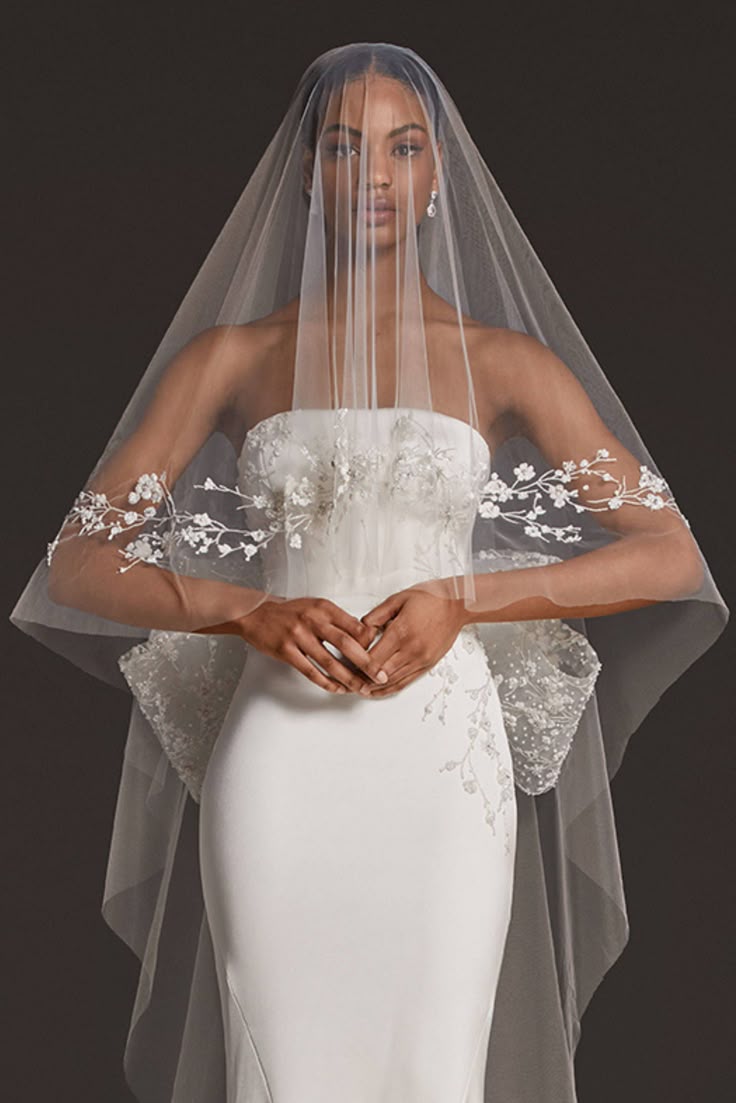 Make a breathtaking entrance with our Ethereal Floral Appliqué Cathedral Veil. This piece is designed for the bride who dreams of a romantic, garden-inspired aesthetic. The veil features two layers: a sheer blusher to be worn over the face for the traditional walk down the aisle, and a dramatic cathedral-length train that follows you with grace.